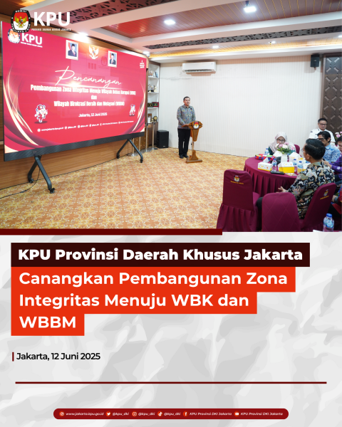 Dalam memperkuat komitmen tata kelola pemerintahan yang bersih dan akuntabel, Komisi Pemilihan Umum (KPU) Provinsi Daerah Khusus Jakarta bersama KPU Kabupaten/Kota se-Provinsi Daerah Khusus Jakarta menggelar Pencanangan Pembangunan Zona Integritas menuju Wilayah Bebas Korupsi (WBK) dan Wilayah Birokrasi Bersih dan Melayani (WBBM) di kantor KPU Provinsi Daerah Khusus Jakarta, Jakarta Pusat pada Kamis, (12/6).