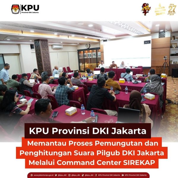 KPU DKI Jakarta juga mengucapkan terima kasih dan penghargaan setinggi-tingginya kepada jajaran kami, di tingkat Kabupaten dan Kota, Anggota PPK, PPS, KPPS dan Petugas Ketertiban TPS atas dedikasi dan kerja kerasnya dalam Pemungutan dan Penghitungan Suara Pilkada Tahun 2024 di DKI Jakarta.
