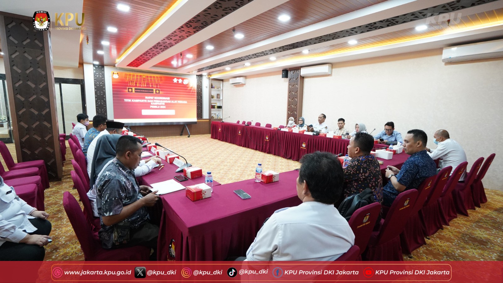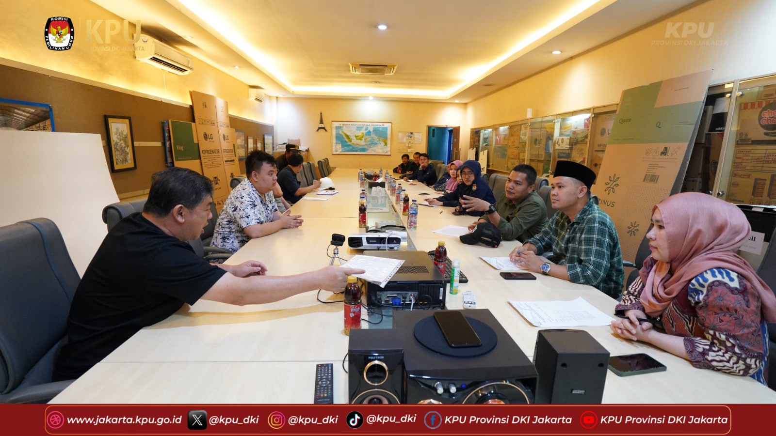 Jakarta-Komisi Pemilihan Umum (KPU) Provinsi DKI Jakarta menggelar rapat kerja Penataan dan Distribusi Logistik Pemilu Tahun 2024 di kantor KPU DKI Jakarta, Jakarta Pusat pada Kamis,(5/10). Ketua Divisi Perencanaan dan Logistik KPU Provinsi DKI Jakarta Nelvia Gustina menyampaikan bahwa terdapat beberapa kriteria logistik pemilu yang diantaranya adalah tepat jenis, tepat jumlah, tepat kualitas, tepat waktu, tepat sasaran dan tepat biaya. "Terkait dengan sewa gudang logistik, saya berharap dalam waktu dekat kedepan KPU Kabupaten/Kota sudah tanda tangan kontrak, agar bisa memaksimalkan kriteria logistik tadi yaitu tepat waktu" kata Nelvia. Hal lain yang disampaikan bahwa saat ini KPU Provinsi DKI Jakarta telah melakukan pengadaan logistik pemilu tahap satu yang sudah diproduksi terdiri dari empat item yaitu kotak suara, bilik suara dan tinta. Sedangkan pengadaan segel berada di KPU Kabupaten/Kota. "Setelah ini kita akan monitoring ke penyedia logistik untuk memastikan betul kesiapan logistik untuk bisa segera distribusikan ke KPU Kabupaten/Kota" tambahnya. Dalam kesempatan yang sama, Sekretaris KPU Provinsi DKI Jakarta Dirja Abdul Kadir menyampaikan bahwa pengadaan logistik Pemilu ini sudah melalui kontrak payung antara KPU RI dan LKPP. "Kita ikuti semua apa yang menjadi arahan dari KPU RI, jangan kita main-main. Lakukan sesuai dengan aturan dan regulasi dari KPU RI" Selain itu, Dirja juga menyampaikan dalam teknis distribusi logistik Pemilu penting adanya penyeragaman waktu dalam pelaksanaan distribusi logistik di setiap KPU Kabupaten/Kota se-Provinsi DKI Jakarta. "Dalam proses distribusi dipastikan harus ada dokumentasi dan Berita Acara yang dilakukan secara detail di setiap pengadaan tersebut sudah turun ke KPU Provinsi dan KPU Kab/Kota" kata Dirja. Selain itu, terkait dengan keamanan gudang logistik, dirinya juga berharap bahwa semua tempat yang akan dijadikan gudang penyimpanan logistik Pemilu di Provinsi DKI Jakarta itu sudah dilengkapi dengan CCTV. "Jumlahnya menyesuaikan dengan luas gudang, pastikan CCTV bisa menjangkau semua area gudang. Untuk itu pemasangan CCTV juga harus pada titik strategis, selain itu juga pastikan kualitas CCTV terbaik" tambahnya. Dalam rapat ini, seluruh satker KPU Kabupaten/Kota se-Provinsi DKI Jakarta menyampaikan persiapan logistik Pemilu 2024 terutama kesiapan gudang penerimaan awal.