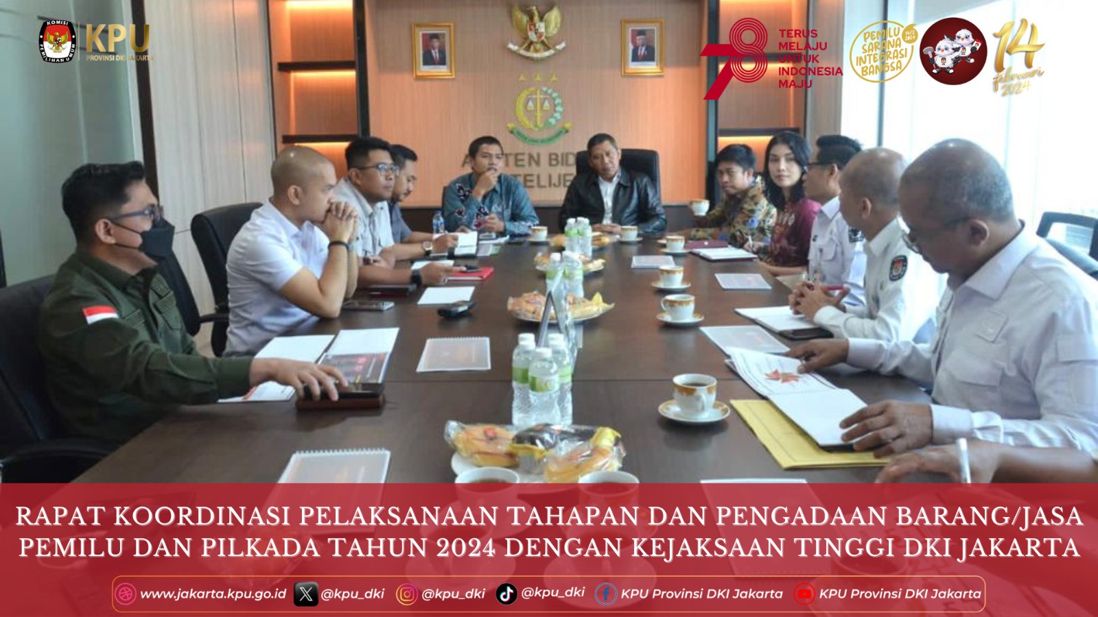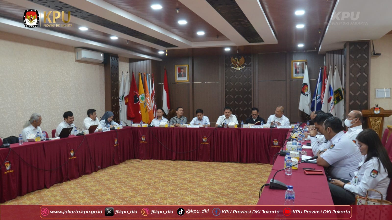 Komisi Pemilihan Umum (KPU) Provinsi DKI Jakarta menerima perwakilan Badan Pengawasan Keuangan dan Pembangunan (BPKP) Provinsi DKI Jakarta untuk melakukan pengawasan terhadap Tata Kelola Kesiapan Penyelenggara Pemilu Tahun 2024 di kantor KPU DKI, Jakarta Pusat pada Senin,(4/9).