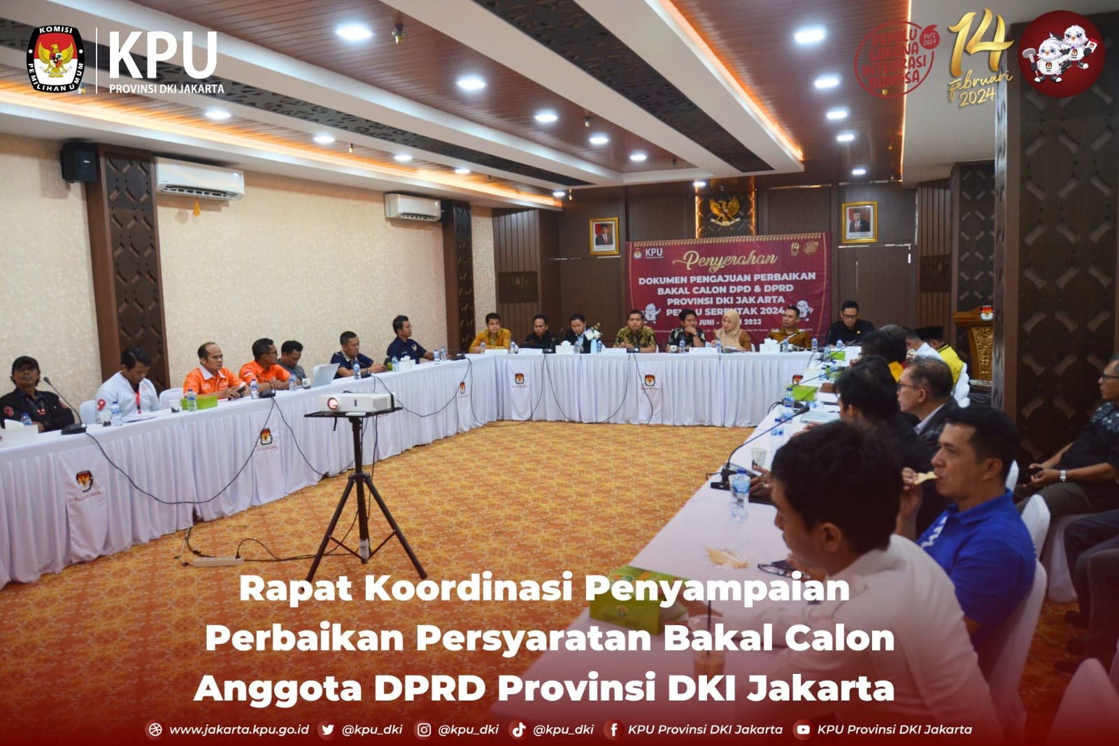 Jakarta- Masa Pengajuan Perbaikan Dokumen Persyaratan bakal calon Anggota DPRD yang dimulai sejak tanggal 26 Juni 2023 akan berakhir pada 9 Juli 2023. KPU Provinsi DKI Jakarta memastikan Partai Politik bisa berkonsultasi dengan memanfaatkan helpdesk untuk mendapatkan informasi terkait dengan perbaikan dokumen persyaratan bakal calon anggota DPRD Provinsi. Kepala Divisi Teknis Penyelenggara Pemilu KPU Provinsi DKI Jakarta Dody Wijaya dalam Rapat Koordinasi Penyampaian Perbaikan Dokumen Persyaratan Bakal Calon Anggota DPRD Provinsi Tahun 2024 menyampaikan secara detail persoalan yang ditemui selama proses verifikasi administrasi. Selain itu Dody juga mengklarifikasi sejumlah isu terkait dokumen yang dinyatakan belum memenuhi syarat (BMS), diantaranya perbedaan nama calon antara KTP dengan Sistem Informasi Pencalonan (SILON) dan dokumen pendukung lainnya. Lebih lanjut juga dijelaskan mengenai ketentuan dimana kandidat yang masih menduduki jabatan tertentu harus mengundurkan diri jika dicalonkan sebagai anggota DPRD. Perwakilan Partai Politik yang hadir sangat antusias menggunakan kesempatan pada sesi tanya jawab, terutama terkait persoalan yang dihadapi dan hasil verifikasi administrasi dokumen bakal calon. Layanan helpdesk KPU Provinsi DKI Jakarta terus dibuka setiap hari mulai pukul 08.00 s.d 16.00 dan pada Minggu, 9 Juli layanan helpdesk dibuka hingga pukul 23.59 WIB.