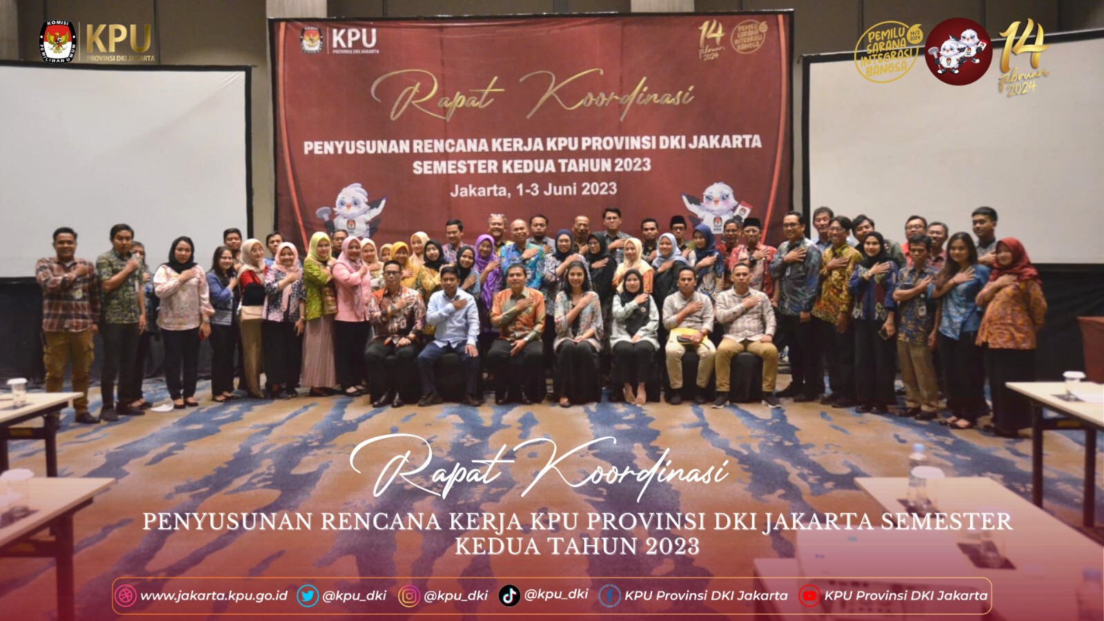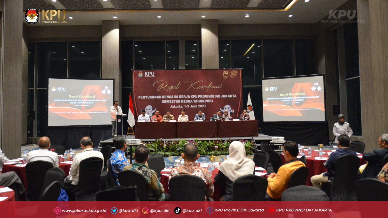 Dalam rangka mempersiapkan tahapan Pemilu yang terus berjalan, Komisi Pemilihan Umum (KPU) Provinsi DKI Jakarta menggelar Rapat Koordinasi Penyusunan Rencana Kerja Semester II Tahun Anggaran 2023 pada Jumat (2/6).