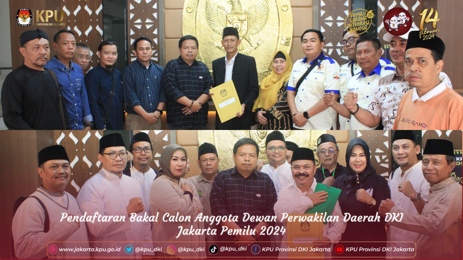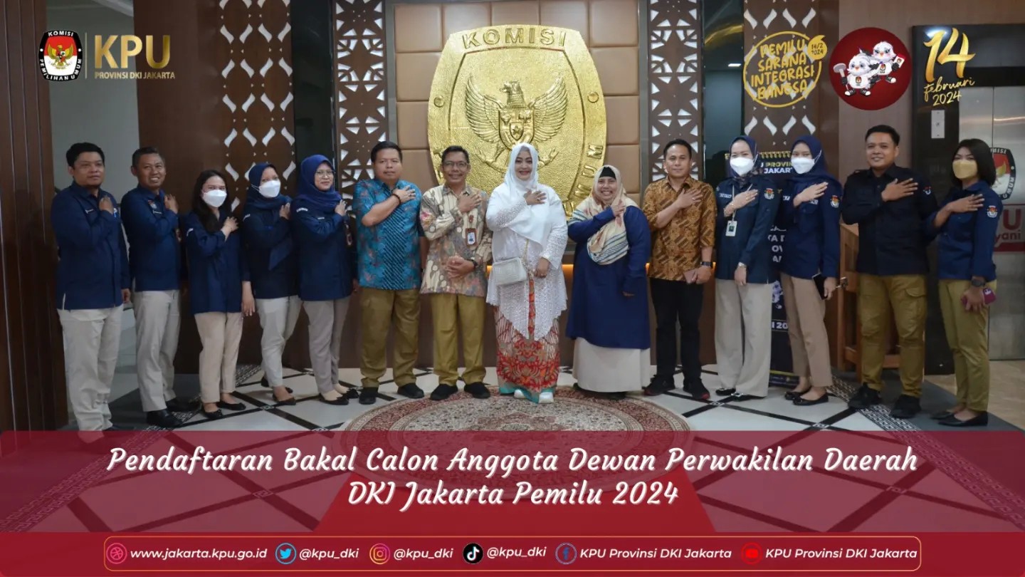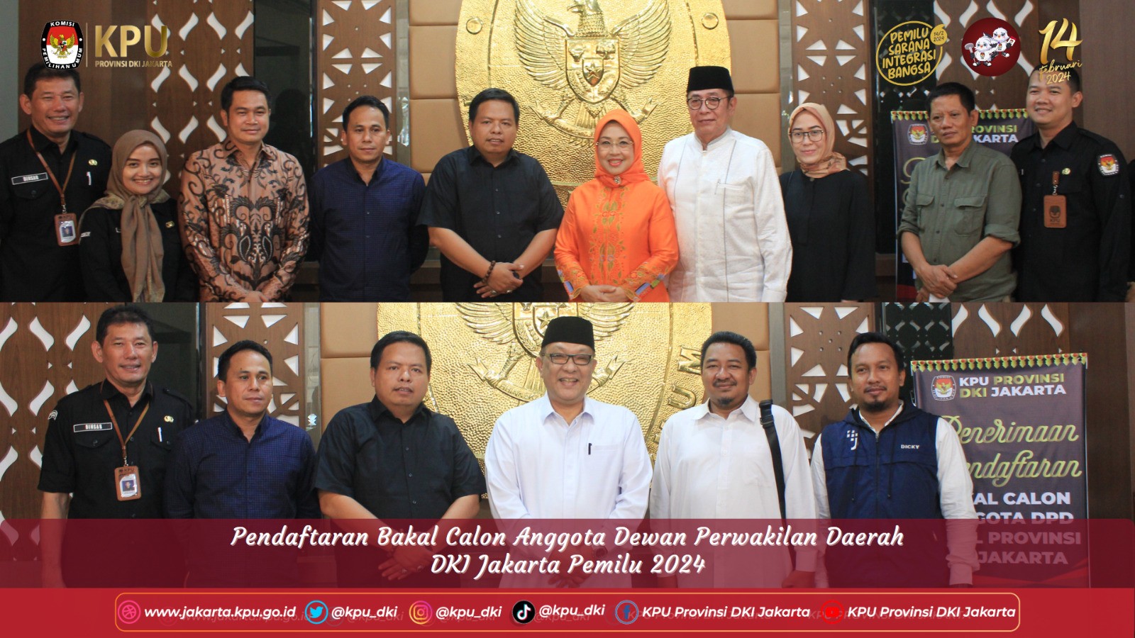 KPU Provinsi DKI Jakarta menerima pendaftaran dan pengajuan Bakal Calon Anggota Dewan Perwakilan Daerah (DPD) dan Dewan Perwakilan Rakyat Daerah (DPRD) Provinsi DKI Jakarta pada Pemilu Tahun 2024 yang dilaksanakan mulai tanggal 1 sampai dengan 14 Mei 2023 di Kantor KPU Provinsi DKI Jakarta. Pada hari kelima pendaftaran (5/5), KPU Provinsi DKI Jakarta menerima dua berkas pendaftaran Calon Anggota DPD RI untuk daerah pemilihan Provinsi DKI Jakarta bakal calon Syarief Hidayatullah dengan jumlah dukungan 3.586 di 5 kota/kabupaten se-DKI Jakarta dan bakal calon Pardi dengan jumlah dukungan 3.194 di 5 kota/kabupaten se-DKI Jakarta. Bakal Calon Anggota DPD yang datang dan mendaftar diterima oleh Anggota KPU Provinsi DKI Jakarta Nurdin, Deti Kurniawati, dan Muhamad Tarmizi, serta didampingi jajaran Sekretariat KPU Provinsi DKI Jakarta. KPU Provinsi DKI Jakarta masih menunggu pendaftaran dan pengajuan Bakal Calon Anggota DPD lainnya dan Partai Politik Peserta Pemilu Tahun 2024 Tingkat Provinsi DKI Jakarta sampai dengan tanggal 14 Mei 2023 paling lambat pada pukul 23.59 WIB yang akan datang. Acara tersebut juga dihadiri langsung oleh Bawaslu Provinsi DKI Jakarta.
