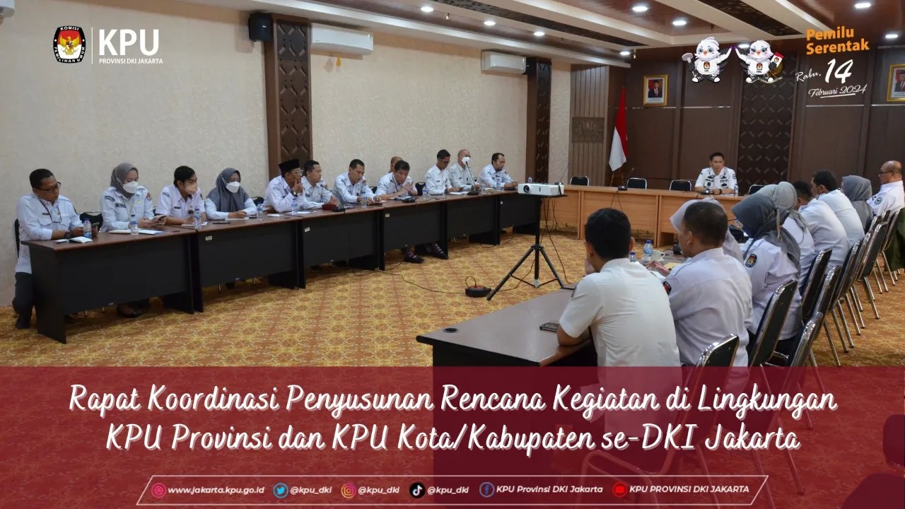Komisi Pemilihan Umum (KPU) Provinsi DKI Jakarta melaksanakan kegiatan Rapat Koordinasi Penyusunan Rencana Kegiatan Triwulan I Tahun Anggaran 2023 secara luring di ruang rapat kantor KPU Provinsi DKI Jakarta pada Senin pagi, (16/1). Rapat yang dipimpin langsung oleh Sekretaris KPU Provinsi DKI Jakarta Dirja Abdul Kadir, dihadiri para Sekretaris KPU Kota/Kabupaten se-Provinsi DKI Jakarta, serta seluruh Pejabat Struktural dan Pejabat Fungsional Sekretariat KPU Provinsi DKI Jakarta. Dalam rakor kali ini terdapat beberapa hal pembahasan strategis, antara lain terkait dengan persiapan tahapan pemutakhiran dan penyusunan daftar pemilih (DPT) Pemilu 2024 yang akan segera berjalan, ditandai dengan pelantikan Petugas Pemutakhiran dan Pendaftaran Pemilih (Pantarlih) pada awal Februari 2023 mendatang. Selain itu, Sekretaris KPU Provinsi DKI Jakarta Dirja Abdul Kadir juga mengingatkan bahwa seluruh kegiatan dan tahapan Pemilu yang telah berjalan di tahun 2022 harus diiringi dengan tersedianya laporan keuangan yang dapat dipertanggungjawabkan, terlebih lagi dalam persiapan menghadapi pemeriksaan atas laporan keuangan dan pertanggungjawaban kegiatan yang akan dilakukan oleh Badan Pemeriksa Keuangan (BPK) dalam waktu dekat. Lebih lanjut Dirja berujar "Untuk penyusunan rencana kegiatan dan kebutuhan anggarannya di Triwulan I Tahun 2023 agar seluruh Pejabat dapat berkomunikasi dengan masing-masing Anggota KPU, Ketua Divisi terkait khususnya. Kemudian berkoordinasi dengan Bagian Perencanaan untuk melakukan revisi anggaran sesuai dengan kebutuhan."