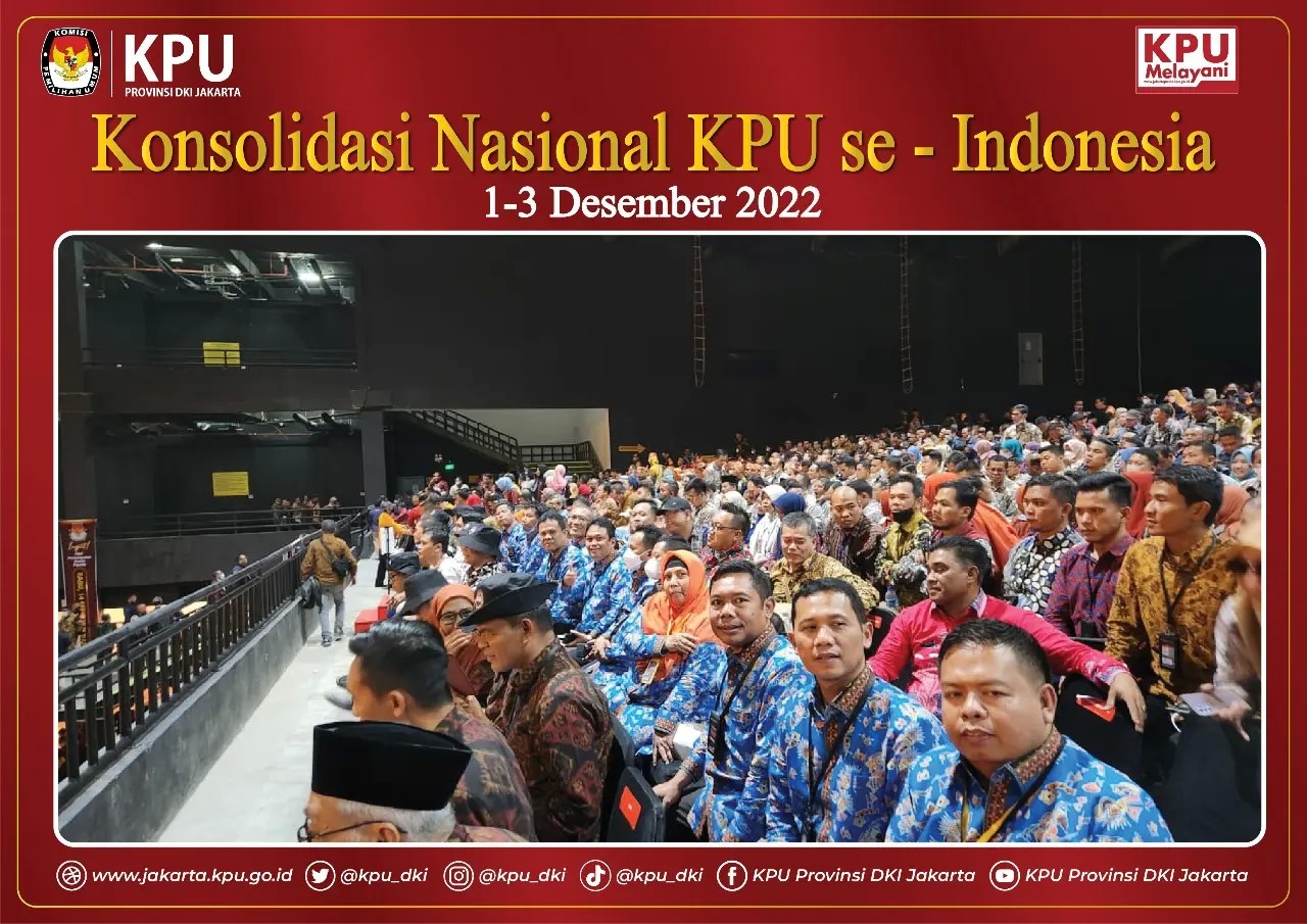Dalam rangka mempersiapkan Pemilihan Umum Serentak Tahun 2024, Komisi Pemilihan Umum (KPU) mengadakan Konsolidasi Nasional di Convention Hall Beach City Entertainment Center (BCEC), Ancol, Jakarta Utara. Acara yang dibuka oleh Ketua KPU RI Hasyim Asy'ari dalam kata pembukanya mengungkapkan rangkaian acara rapat konsolidasi nasional berlangsung pada 1-3 Desember 2022 dengan melibatkan jajaran KPU di tingkat provinsi, kabupaten, dan kota di seluruh Indonesia. Dengan mengusung tema Konsolidasi KPU untuk Peningkatan Layanan Pemilu 2024, Ketua KPU RI juga menjelaskan bahwa KPU berkewajiban untuk menyelenggarakan Pemilu sesuai dengan aturan, asaz dan prinsip-prinsip penyelenggaraan pemilu.serta menyampaikan kegiatan tahapan pemilu yang berlangsung saat ini terdiri dari verifikasi partai politik, persiapan untuk pemutakhiran daftar pemilih, penataan daerah pemilihan DPRD kabupaten/kota, pembentukan badan Ad Hoc Panitia Pemilihan Tingkat Kecamatan, persiapan untuk pemutakhiran daftar pemilih, dan penyerahan dukungan bagi bakal calon Anggota DPD. Setelah dibuka oleh Ketua KPU RI, kegiatan dilanjutkan dengan pengarahan dari masing-masing Anggota KPU RI. Mengawali arahan pertama oleh Ketua Divisi Keuangan, Umum dan Rumah Tangga Yulianto Sudrajat mengaakan Pemilu 2024 memiliki tantangan yang berbeda, makanya konsolidasi ini momen penting karena Pemilu Serentak 2024 adalah sarana integritas bangsa. Ketua Divisi Data dan Informasi Betty Epsilon Idroos mengungkapkan Sasaran digitalisasi Pemilu adalah kepercayaan publik.Dimana terdapat tiga aspek yang harus dijaga yaitu Kerahasiaan, keabsahan ,dan ketersediaan data, Ketua Divisi Hukum dan Pengawasan Mochammad Afifudin menyampaikan Konsolidasi menjadi penting untuk menyamakan pemahaman terkait kebijakan yang diambil KPU dalam Penyelenggaraan Pemilu, Sementara Ketua Divisi Teknis Penyelenggaraan Pemilu Idham Kholik menekankan Pelayanan pemilu tidak hanya diawali dari kebijakan strategis, tetapi titik kuncinya adalah komunikasi. Ketua Divisi Sosialisasi, Pendidikan Pemilih dan Parmas August Mellaz menyampaikan bahwa sosialisasi pemilu masih terus dilakukan sampai dengan 14 Februari 2024, dan Ketua Divisi SDM dan Litbang Parsadaan Harahap mengingatkan agar semua pihak dapat terus menjaga sinergi dan harmonisasi dalam mendukung pelaksanaan Pemilu 2024. Sementara Sekretaris Jenderal KPU RI Bernard Dermawan Sutrisno dalam arahannya menyampaikan agar jajaran Sekretariat dapat terus menjaga soliditas dan loyalitas dalam bekerja.