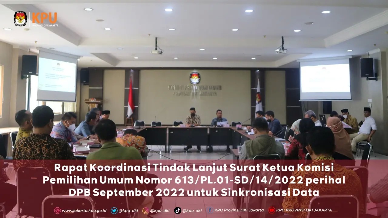 Guna memastikan pemutakhiran data sesuai dengan kondisi faktual dan sesuai peraturan yang berlaku, KPU Provinsi DKI Jakarta melakukan koordinasi dengan KPU Kabupaten/Kota se-Provinsi DKI Jakarta dengan melakukan rapat koordinasi di Kantor KPU Provinsi DKI Jakarta pada Jumat, 12 Agustus 2022. Rapat koordinasi ini adalah sebagai tindak lanjut dari adanya Surat Edaran KPU RI nomor 613/2022 tanggal 5 Agustus 2022 tentang Daftar Pemilih Berkelanjutan (DPB) September 2022 untuk dilakukan Sinkronisasai Data. Rapat koordinasi dipimpin oleh Anggota KPU Provinsi DKI Jakarta Divisi Data dan Informasi Partono dan dibuka oleh Ketua KPU Provinsi DKI Jakarta Sunardi. Dalam sambutannya Sunardi mengharapkan agar seluruh pihak yang terlibat dalam pemutakhiran data pemilih untuk senantiasa berkoordinasi menyamakan persepsi terhadap Daftar Pemilih Berkelanjutan (DPB), karena akan menjadi dasar dalam proses pemutakhiran daftar pemilih untuk Pemilu 2024 mendatang. “Terus meningkatkan kerjasama agar DPB lebih up to-date dan mutakhir.” pinta Sunardi. Setelah rapat dibuka secara resmi, acara dilanjutkan dengan penjelasan oleh Partono, selaku Ketua Divisi Data dan Informasi yang menjelaskan tentang Surat Edaran KPU RI nomor 613/2022. Menurut Partono, dalalm surat edaran tersebut diperintahkan bahwa DPB bulan September adalah sebagai bahan sinkronisasi dengan Sistem Informasi Administrasi Kependudukan (SIAK) dan memastikan pemutakhiran sesuai dengan kondisi faktual dan peraturan yang berlaku. Selanjutnya Partono mengharapkan agar proses penyaringan data yang tidak memenuhi syarat (TMS) sesuai dengan peraturan perundang-undangan yang berlaku dan penyaringan pemilih meninggal dunia disertai dengan akta kematian atau surat keterangan dan diunggah ke Sistem Informasi Data Pemiih (Sidalih), serta mengingatkan bahwa proses input data ke Sidalih paling lambat tanggal 30 September 2022 (sebelum 1 Oktober 2022) Selanjutnya diingatkan agar menyampaikan Berita Acara (BA) Rekapitulasi DPB kepada KPU Provinsi DKI Jakarta paling lambat 3 Oktober 2022, karena KPU Provinsi menyampaikan rekapitulasi DPB tingkat provinsi kepada KPU RI paling lambat tanggal 5 Oktober 2022. Sebagai informasi, data pemilih berkelanjutan terakhir KPU Provinsi DKI Jakarta adalah data di bulan Juli 2022 ini yang direkap pada awal Agustus 2022 dan diperoleh diperoleh angka sejumlah 7.906.566 Pemilih, dengan rincian laki-laki 3.928.112 Pemilih dan 3.978.454 Pemilih perempuan yang tesebar di 6 Kabupaten/Kota, 44 Kecamatan dan 267 Kelurahan di Provinsi DKI Jakarta. Dalam rekapitulasi terakhir tersebut diperoleh informasi adanya pemilih baru sejumlah 33.830, pindah masuk 13.789, dan pemilih pemula 20.041. Sedangkan pemilih tidak memenuhi syarat (TMS) mencapai 18.680, data ganda/ubah data sejumlah 144/17.072, pindah keluar 12.020, Anggota TNI/Polri 8 dan meninggal dunia 6.492 jiwa.