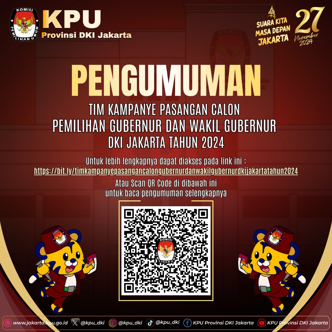 Berikut Pengumuman Tim Kampanye dan Media Sosial Kampanye Pasangan Calon Pemilihan Gubernur dan Wakil Gubernur DKI Jakarta Tahun 2024