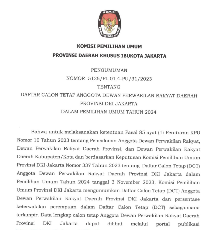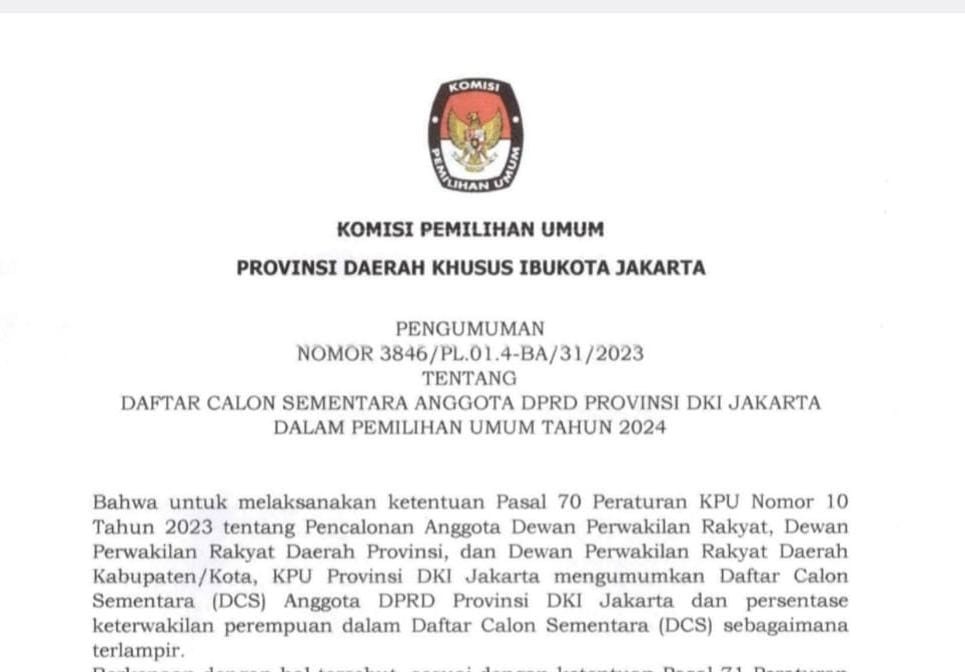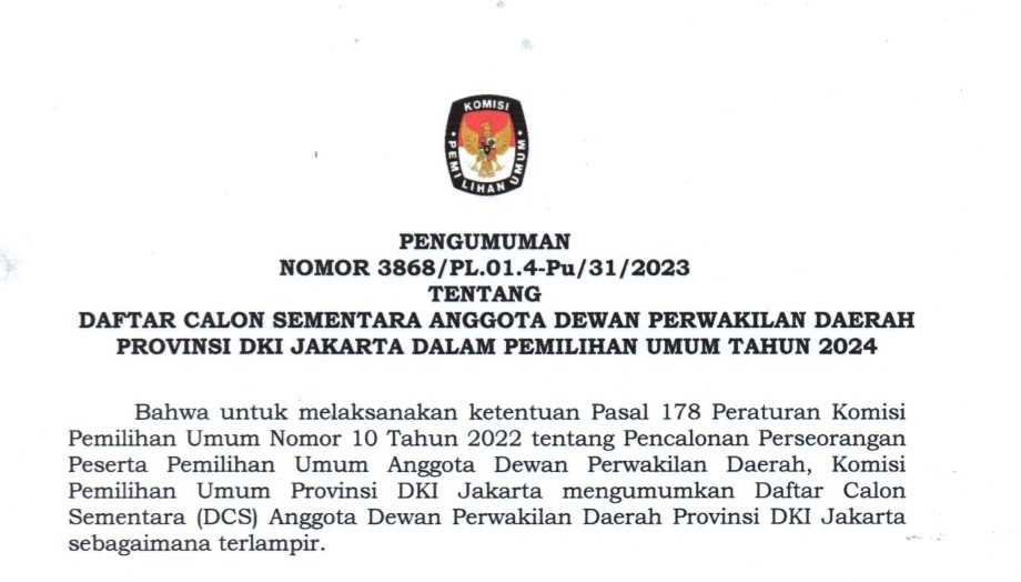 Berikut kami sampaikan Daftar Calon Sementara Anggota DPRD Provinsi DKI Jakarta